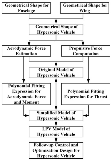 Additionally, the control-centric trade studies were conducted based on a parametric model, and this work explores the parameterization types, parameter ranges, and objectives available for the analysis and optimization of the aerospace vehicle [10]. Moreover, a multidisciplinary optimization method was proposed [11], and the optimal vehicle configuration and flight trajectory are determined to accomplish the mission requirements. The parametric model provides a suitable way to change a vehicle optimized for a single design point to be more effective along a trajectory [12]. In summary, the parametric model is a fundamental issue for further studies. Furthermore, the model provides an effective tool to construct the mutual relations between the propulsion, aerodynamics, control, and structural dynamics so that the optimal trade results for the aerospace vehicle design can be easily obtained in the conceptual stage.