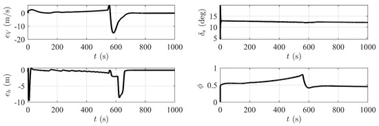 For Equation (36), the control gains can be determined by selecting and to make the track errors close to zero. Hereto, we design an optimal controller for ascent tracking, whereas the robustness of the closed-loop system should be further discussed.