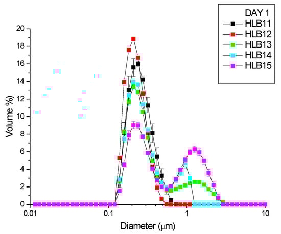 | D3,2 (µm) | 0.224 ± 0.010 | 0.203 ± 0.012 | 0.257 ± 0.034 | 0.246 ± 0.013 | 0.341 ± 0.011 |