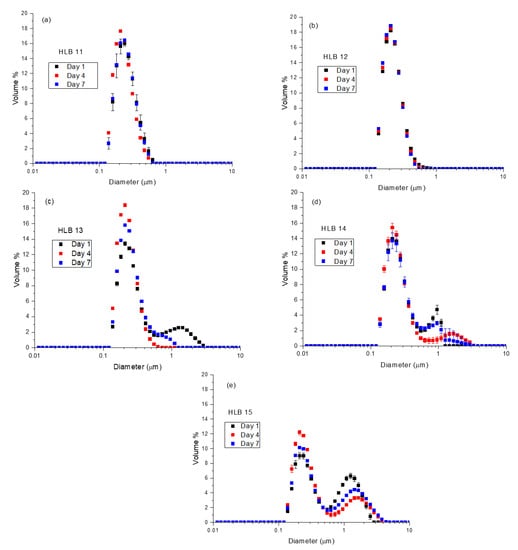 3.2. Influence of Aging Time on Microfluidized Nanoemulsions
