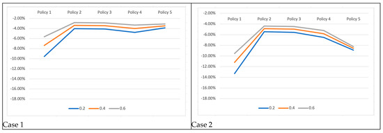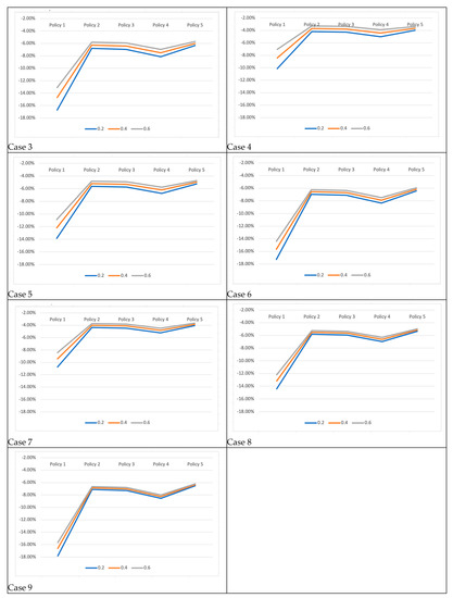 Figure 7 shows the time delay for the unit of the part delayed. The improvement in this performance means that the increment in total time delay is not proportional to the increment in parts delayed. Then, the parts delayed increase with switch-off policies’ increase with lower delay time accumulated. This can be important if the penalty is related to the time delay of the parts.