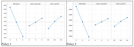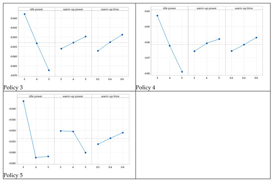 Table 5 reports the ANOVA (α = 0.05) analysis conducted considering the idle, warm-up power, and warm-up time as the source of variance. The sources of variance are relevant for all policies tested except policy 5. The ANOVA analysis highlights how policy 5 is more robust in terms of the warm-up characteristics.