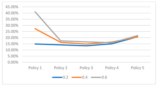 Figure 3 shows the impact of the main effects of energy reduction for the five policies studied. Policies 2, 3, 4, and 5 reduce the variability of the energy reduction compared to policy 1 based only on the queues.