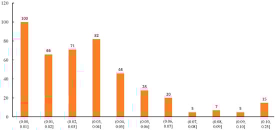 According to the pixel size of all targets in the dataset, in which the maximum pixel was 45 × 21 and the maximum proportion of the target size was 0.12%, the number of correctly identified targets in 11 proportional intervals was counted. The correct rate of identification using different methods was compared. The results of the ablation experiment are as follows.