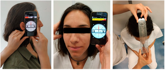 - Rodríguez-Sanz, J.; Carrasco-Uribarren, A.; Cabanillas-Barea, S.; Hidalgo-García, C.; Fanlo-Mazas, P.; Lucha-López, M.O.; Tricás-Moreno, J.M. Validity and reliability of two Smartphone applications to measure the lower and upper cervical spine range of motion in subjects with chronic cervical pain. J. Back Musculoskelet. Rehabil. 2018, 1, 1–9. [Google Scholar] [CrossRef] [PubMed]