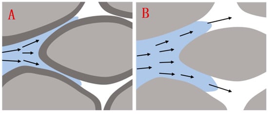 In recent years, given the newly added geological reserves in China, low-permeability and very-low-permeability geological reserves have increased yearly [1,2]. Based on previous statistical results, the porosity of low-permeability reservoirs is less than 15% and their permeability is less than 20 mD [3]. Many fine pore throat structures exist in low-permeability reservoirs [4]. Owing to the existence of microcapillary forces, the solid–liquid interface and the electrochemistry effect, a start-up pressure difference exists in low-permeability reservoirs [5,6]. Moreover, the clay in the formation is easy to expand [7,8], which leads to the high pressure of the water injection well. So, it directly affects the efficiency of water injection, increases the burden of the water injection system and causes high energy consumption. In addition, a casing rupture will occur when the water injection system is under a long-term high-pressure condition, which would result in a reduction in sweep efficiency and oil recovery efficiency [9]. Therefore, the development of high-efficiency pressure-reducing and injection-enhancing agents is key to the exploitation of low-permeability reservoirs.
