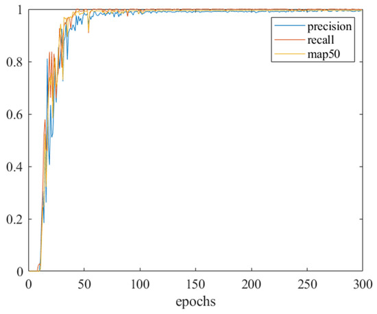This section analyzes and discusses the training results based on YOLOv5 under the self-made metal hose dataset. Figure 6 shows that the training accuracy and recall rate of YOLOv5 was 100 %, the mAP50 result was 99.5%, the detection speed with the YOLOv5 model was 30 FPS, and the detection with the YOLOv5 model could meet the detection requirements.
