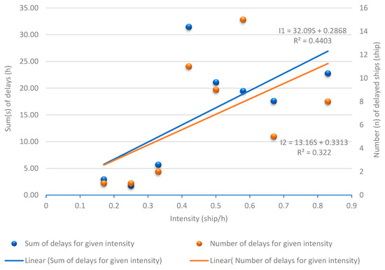 4.1. Study of the Influence of Intensity on the Phenomenon of Ship Delays