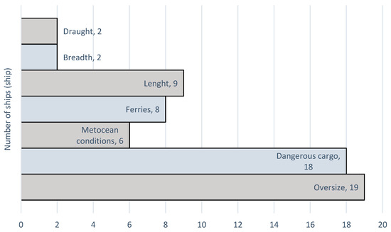 - Vessels that cannot pass each other due to exceeding the limit of drafts.