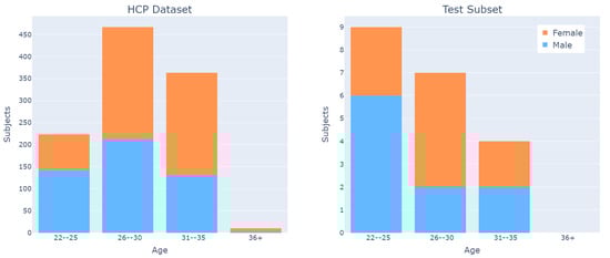 Age range and sex distributions for HCP dataset and test subset.