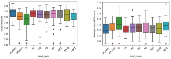 Our best results were obtained when using all input maps simultaneously (diffusion combined with T1). However, certain specific combinations unexpectedly led to deteriorated performance; i.e., the combination of the FA and MD yielded worse results than either of its constituent maps. We hypothesize that the aggregation of maps with small statistical differences is disadvantageous for the CNN model, as the resultant increase in information does not outweigh the increase in complexity. However, further investigation is required to understand this mechanism and determine the optimal map combinations for this task.