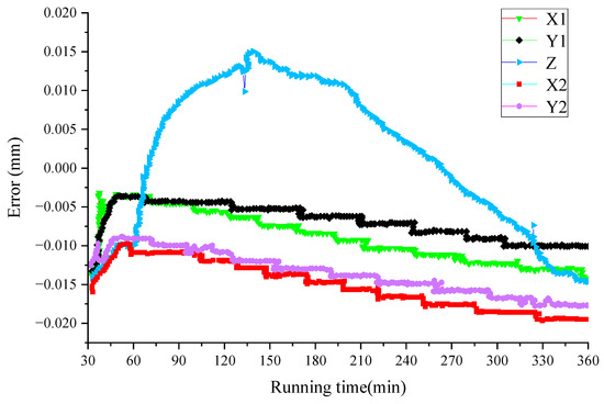 Figure 4. Thermal error curves in X1, X2, Y1, Y2 and Z direction of B5.