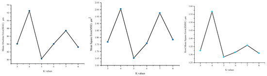In order to judge which set of temperature-sensitive variables is most appropriate for the prediction of thermal errors, three metrics, mean absolute error (MAE), mean square error (MSE) and root mean square error (RMSE), are selected. The definitions of the metrics are shown in Equation (5).