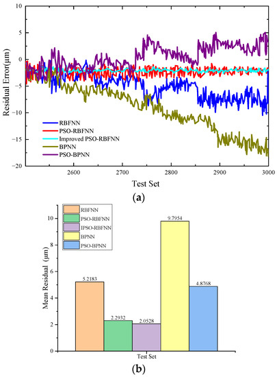 Figure 10. Prediction performance of each model. (a) Residual error; (b) Mean residual error.