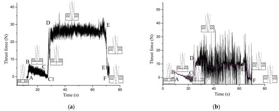 A multicomponent dynamometer (9139AA, Kistler Instrumente AG, Winterthur, Switzerland) was used to measure the thrust force in experiments. The thrust force was converted into electrical signals by dynamometer, which were processed by a multichannel charge amplifier (5080A, Kistler Instrumente AG, Switzerland), converted, and transmitted to a computer through an analog to digital converter card (5697A1, Kistler Instrumente AG, Winterthur, Switzerland).