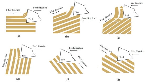 CFRP is a typical anisotropic material, which is different from the titanium alloy and belongs to isotropic material with simple influence law. Different layers of CFRP have different material removal during cutting due to the influence of the fiber cutting angle. Figure 15 is a schematic diagram of material removal corresponding to the angle between 0 and 180°.
