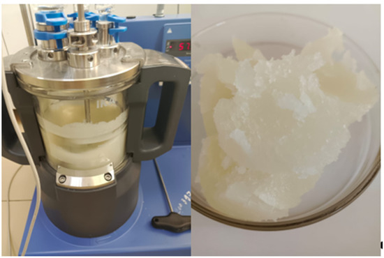 The process was carried out in a laboratory chemical reactor LR 1000 (IKA Werke GmbH Co, Staufen, Germany) equipped with an overhead stirrer at a temperature of 90–95 °C for 60 min, with continuous stirring at 150 rpm. The oleogels were then cooled and held at a temperature of 4 °C for 24 h to stabilize the desired structure. The process of preparing the oleogel is illustrated in Figure 1.