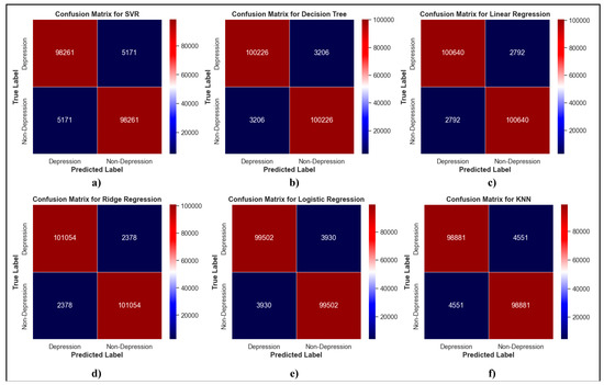- Choudhury, A.A.; Khan, M.R.H.; Nahim, N.Z.; Tulon, S.R. Predicting Depression in Bangladeshi Undergraduates using Machine Learning. In Proceedings of the 2019 IEEE Region 10 Symposium (TENSYMP), Kolkata, India, 7–9 June 2019; pp. 789–794. [Google Scholar] [CrossRef]