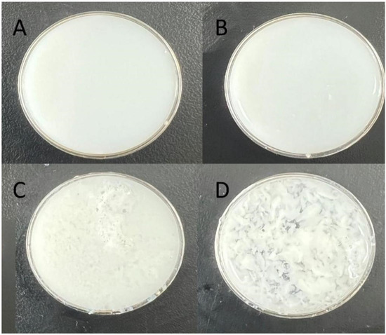 In addition, 4.5 g of each of the 4 types of fish gelatin was weighed into a beaker and TG enzyme was added at a ratio of 100 U/g. Then, 50 mL of chicken salt-soluble proteins was evenly mixed for 30 s using a high-speed homogenizer at 10,000 r/min, added to gelatin at 25 °C and then stored in the refrigerator at 4 °C. For the control group, 50 mL of ice water was used.