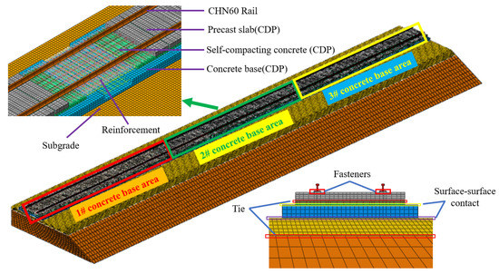 - Cai, X.; Zhang, Q.; Wang, Q.; Cui, X.; Dong, B. Effects of the subgrade differential arch on damage characteristics of CRTS III slab track and vehicle dynamic response. Constr. Build. Mater. 2022, 327, 126982. [Google Scholar] [CrossRef]
