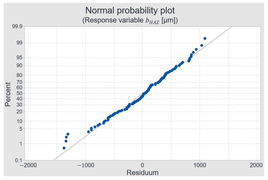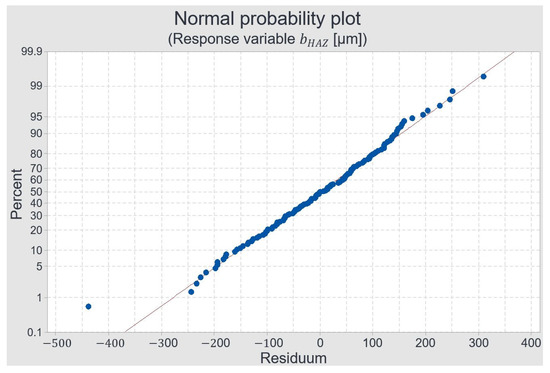 Normal probability plot for the width of the HAZ.