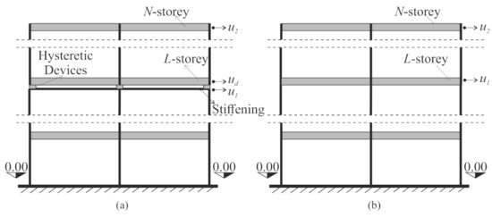 - The modal displacements of the storey of the discontinuity and top storey (i.e., L-th and N-th storeys in Figure 1a of the M-DOF system without discontinuity are equal to the modal displacements and of the AS.