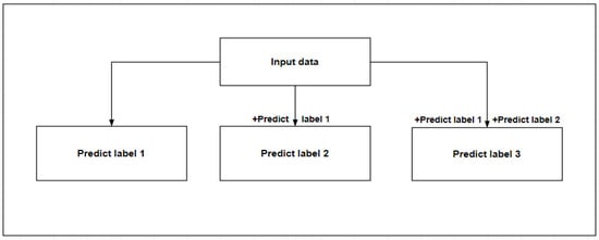 There are two methods for predicting multiple output attributes. Method 1 (Figure 5) divides multiple outputs into multiple single outputs for prediction, and the output between each output is independent. Method 2 (Figure 6) includes the predicted single attributes into the known data to predict the next attribute, and there is a certain relationship between the outputs. This study compares the two methods to select the optimal method for prediction and, according to different methods, select the appropriate model. The model selection process is shown in Algorithm 1.