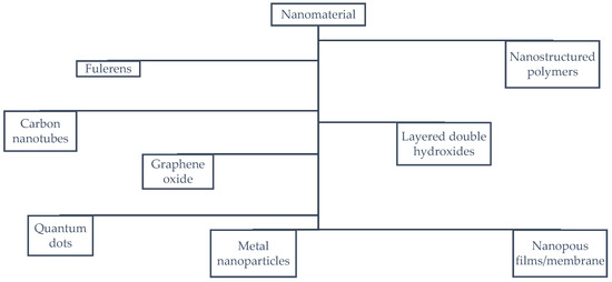 Despite the many advantages of nanoparticle-modified electrodes, there are also some challenges and limitations to their use. For instance, the synthesis and functionalization of nanoparticles can be difficult and time-consuming, and the stability of these materials can vary depending on the conditions of the electroanalytical measurement. Additionally, electrochemical signal interferences from other compounds with similar chemical structures can limit the selectivity of these sensors. Conclusively, Figure 3 summarizes some of the most common materials and nanomaterials used in electrode modification [47].