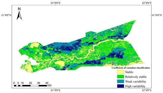 Spatial distribution of vegetation cover variation coefficients in the study area in 2020.