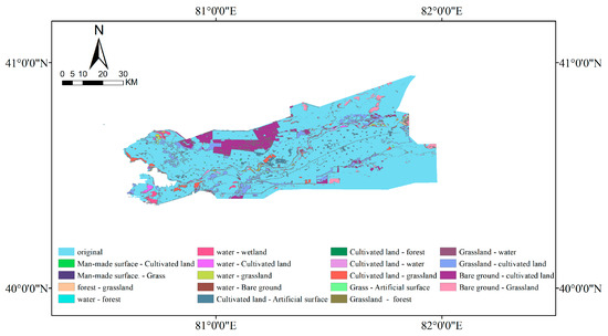 Land use transfer matrix for 2000–2020 for the Alar Reclamation Region.