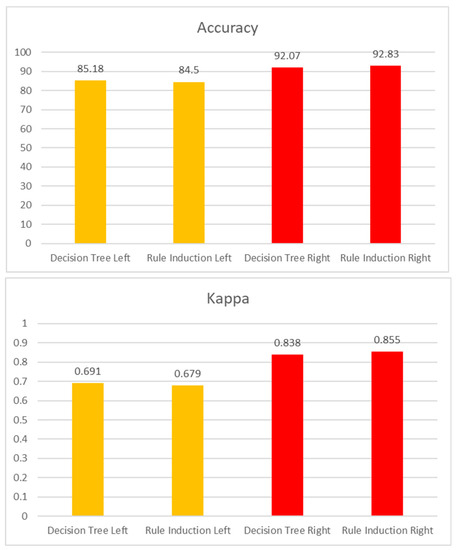 - Performance—Overall, the Left and Right camera datasets were compared that show accuracy of 91.5% and 97.05% and kappa of 0.7 and 0.9 respectively. The left model shows a lesser accuracy rate because of fewer motions exhibited on the left side. Since the users are also using other peripherals such as a mouse, there are much more variations between proper and improper motions on the right side compared to the left side.
