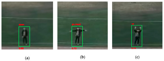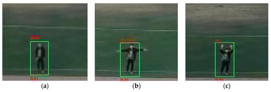Improved detection results. (a–c) are the three test actions after the model improvement.