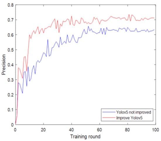 It can be seen from the above comparison that the improved YOLOv5s has improved mAP, recall, Precision, and Loss index performance compared with the original YOLOv5s, and it has significantly improved detection ability for smaller targets in blurred images.