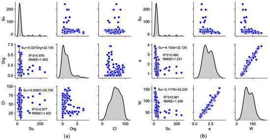 Visualization of normal distribution of 11 clay parameters. (a) Fitted relationship of , , . (b) Fitted relationship of , , . (c) Fitted relationship of , , . (d) Fitted relationship of , , . (e) Fitted relationship of , , . (f) abnormal value analysis.