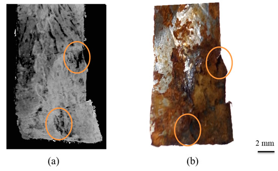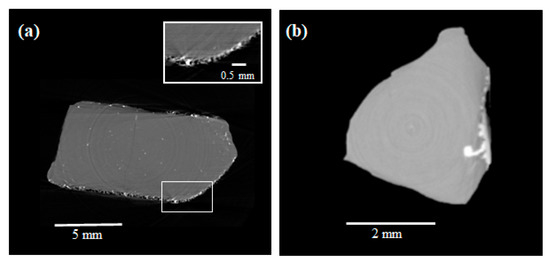 Sectional images obtained by CXI of (a) CH4 hydrate and (b) natural gas hydrate with ice (white part) at 193 K. Reprinted with permission from [60,61]. Copyright 2011 and 2012, American Chemical Society.