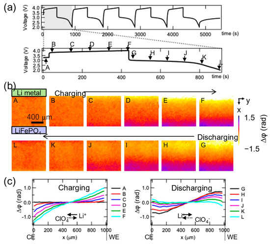 - Takamatsu, D.; Yoneyama, A.; Asari, Y.; Hirano, T. Quantitative Visualization of Salt Concentration Distributions in Lithium-Ion Battery Electrolytes during Battery Operation Using X-ray Phase Imaging. J. Am. Chem. Soc. 2018, 140, 1608–1611. [Google Scholar] [CrossRef]