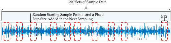 For the noise dataset, the random step increment slip method [26] was applied to classify each noise type into 200 groups as shown in Figure 4. The length of each intercepted signal is 512. In addition, the min-max normalization method was used to map the noise signal into intervals [0, 1]. The separated noise signals were taken as reference signals for ANC system.