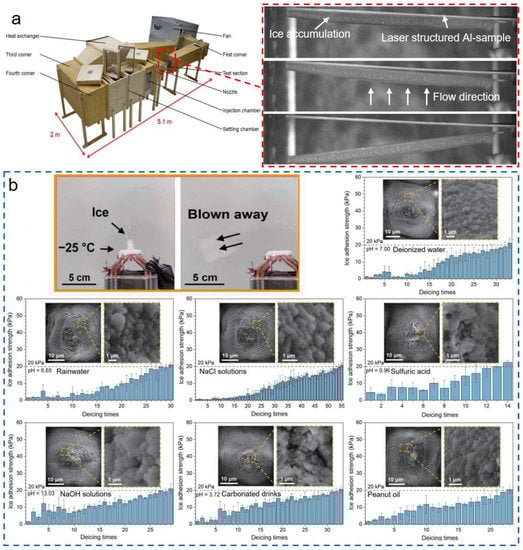 - Shen, Y.; Wu, X.; Tao, J.; Zhu, C.; Lai, Y.; Chen, Z. Icephobic materials: Fundamentals, performance evaluation, and applications. Prog. Mater. Sci. 2019, 103, 509–557. [Google Scholar] [CrossRef]