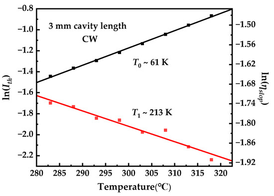 The characteristic temperatures T0 and T1, signifying the exponential temperature dependence of the threshold current and efficiency, are determined by using the following expressions [33]: