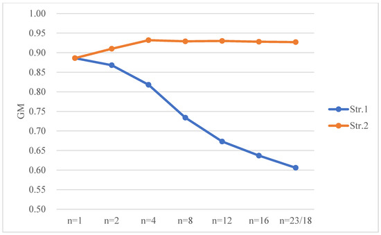 Results for GM under a varying number of source projects n between two strategies in MSHKM.