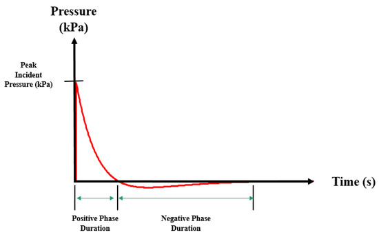 Explosive properties, standoff distances and the environment of the explosion are important in blast load design. The most commonly used correlation, which exemplifies the time-dependent behaviour of the explosion, is the equation developed by Friedlander (Equation (1)) [18].