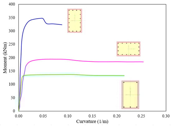 In order to determine the rotation rates at the column and beam ends, plastic hinges were defined at the ends of the columns and beams while modeling the structures in nonlinear calculation methods. Additionally, moment–curvature diagrams were used in defining plastic hinges. In the definition of column joints, plastic hinges were defined for each column by entering the vertical reaction force values (normal force) of each storey (Figure 5).