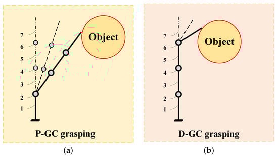 (a) The P-GC grasping mode and (b) the D-GC grasping mode.