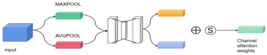 The channel attention mechanism is an adaptive spatial region selection mechanism that selects the positions the model needs to focus on to obtain the specific location of the disease in the image. The channel attention mechanism weights the convolutional features of the channels, thereby enhancing the expression ability of the disease parts. The channel attention mechanism can be expressed as Equation (1), as shown in detail in Figure 4.
