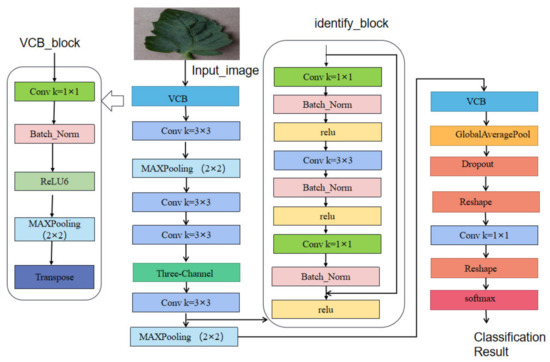 Many deep learning-based methods have been proposed for crop disease identification [5,6,7,8,9,10,11,12,13,14,15,16,17,18]. For example, Li et al. [5] proposed the OplusVNet, a 13-layer convolutional neural network that achieved 99% prediction accuracy on a dataset collected from the field using VGG16 network modules for transfer learning. Nguyen et al. [6] proposed a neural network model that combines image segmentation with transfer learning, segments the image, uses HSV to extract the original leaf area and black background, and feeds it into a VGG-19 model for transfer learning, achieving an accuracy of 99.72%, with a training time of 275,000 s. These networks have effectively improved the recognition of crop diseases and pests. However, due to their complex structure and large model size, they are difficult to deploy on current mainstream devices for real-time disease and pest identification.