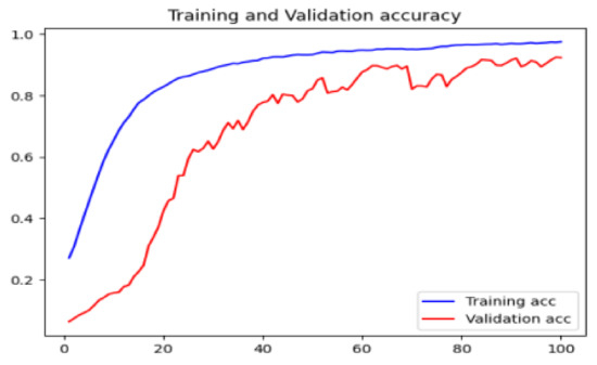 The parameters for the comparative experiment are set as follows: the original size of the image is 256 × 256 pixels, so the model input is also adjusted to 256 × 256 × 3. The training set and test set are set at a ratio of 7:3. The batch size is set to 32, the number of epochs is set to 100, and the initial learning rate is adjusted by comparison and finally set to 0.0001. The optimizer used is RMSprop, the loss function used is categorical_crossentropy, and the softmax activation function is used. Categorical_crossentropy is shown in Equation (4):