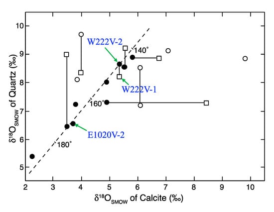 Chicago/Turabian StyleMorishita, Yuichi. 2023. "Hydrothermal Calcite Precipitation in Veins: Inspired by Experiments for Oxygen Isotope Fractionation between CO2 and Calcite from 1 °C to 150 °C" Applied Sciences 13, no. 9: 5610. https://doi.org/10.3390/app13095610