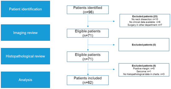 - Patients for whom surgery was the treatment of choice and whose intervention consisted of tumor resection and associated cervical lymphadenectomy;