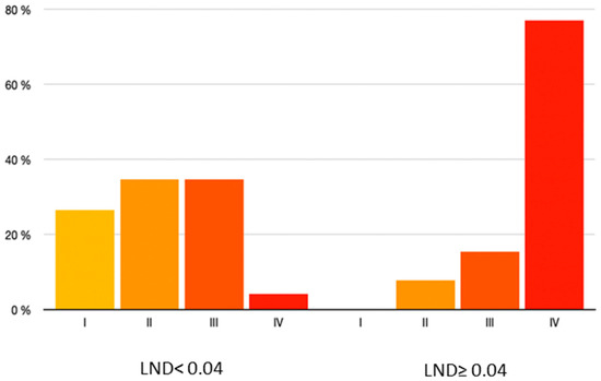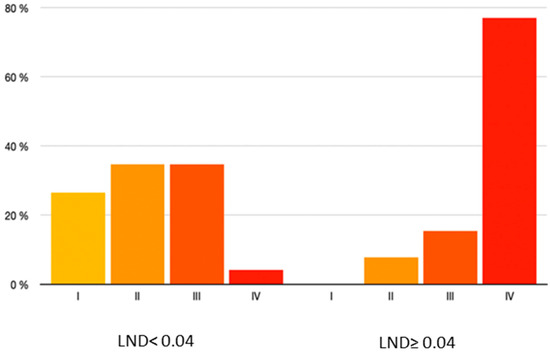 | Variable | Categories | Total Population (n = 62) | LND < 0.04 | LND ≥ 0.04 |