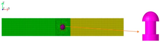 LS-DYNA was primarily used for the stress analysis of the structures subjected to various impact loadings, which was used for the numerical investigations of riveted joints under dynamic loadings in many research studies, such as Refs [22,23]. This paper established a tensile test model in the impact dynamics software LS-DYNA. The rivets and plates were made of hexahedral units. The cell size was 0.5 mm at the rivet and plate lap and 1 mm throughout the remainder of the grid. The model had a total of 42,591 nodes and 38,752 cells. The upper plate and the lower plate, the upper plate and the rivet, and the lower plate and the rivet all adopted the AUTOMATIC_SURFACE_T O_SURFACE contact method, and the friction coefficient was set at 0.18 [19]. BOUNDARY_SPC_SET was used to constrain all the degrees of freedom for 35 mm on one side of the substrate, as well as to constrain the degrees of freedom in the Y- and Z-directions for 35 mm on the other side. A velocity load of 3 mm/min in the X-direction was also applied using BOUNDARY_PRESCRIBED_MOTION_SET. A maximum principal strain random failure model was used to simulate the tensile fracture process. Based on Ref [24], the maximum principal strain random failure criterion is suitable for the large deformation failure behavior of homogeneous, isotropic metal materials with no obvious stress concentration and defects. The theoretical explanation described that when the maximum principal strain in the material reaches a certain degree, the material will be damaged and eventually fail. When applying the maximum principal strain random failure criterion, each point in the material’s principal strain must be calculated first. The principal strain refers to the strain value in the three principal stress directions, which the eigenvalue decomposition of the stress tensor can obtain. Then, determine whether the material will fail according to the size of the maximum principal strain. In LS-DYNA, MAT_ADD_EROSION was used to define the failure modes of the rivets and plates. To simulate the quasi-static stretching process, the simulation was solved using an implicit solver.